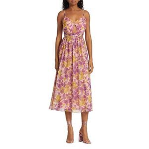 NWOT LTD Pink & Purple Floral Cutout Midi Dress Size 4