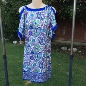 Lucky Brand silk cold shoulder paisley dress. New without tags. Xs. Hippie print similar to Indian vintage dresses.