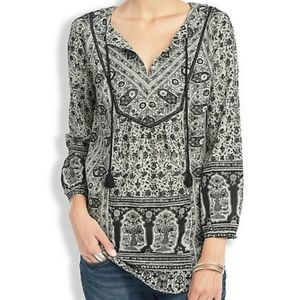 Lucky Brand Colors: Black White and Gray Tunic Bohemian-inspired tunic top in spun viscose, featuring a black white and gray placement print, ladder lace closure and curved bottom hem. Roomy oversized fit Viscose / Machine wash Size S ~ Womens