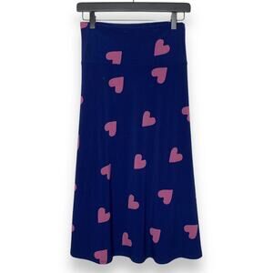 NWOT LULAROE women's navy blue / pink heart print Azure midi skirt SZ XL