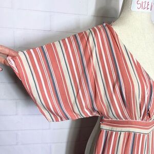 NWOT |•LULUS•| Vacation Bae Rusty Rose Striped Short Sleeve Jumpsuit Size Small