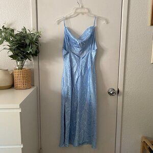 NWOT LULUS You're My Type Light Blue Satin Floral Jacquard Midi Slip Dress Small