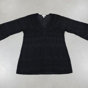 NWOT La Blanca Black Crochet V-Neck Bell Sleeve Swim Cover-Up Tunic XL