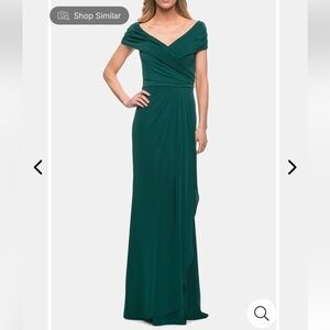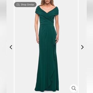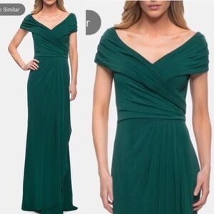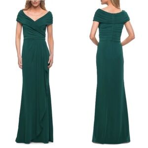 NWOT La Femme Ruched Column Jersey Long Gown in Emerald Green, Size 6