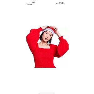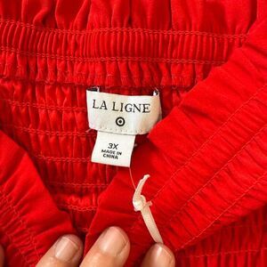 NWOT La Ligne Size 3X Smoked Bodice Midi Dress Red Pockets Square Neck