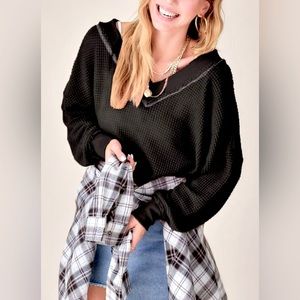 NWOT La Miel Waffle Stitching Detail Waffle Knit Top