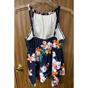 NWOT Ladies Plus Kona Sol Blue Floral Tankini Swm Top - 16W