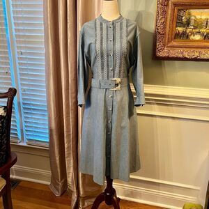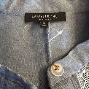 NWOT Lafayette 148 Embroidered Cotton Chambray Midi Shirtdress Shirt Dress 10