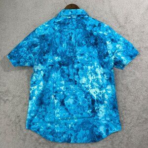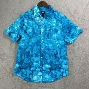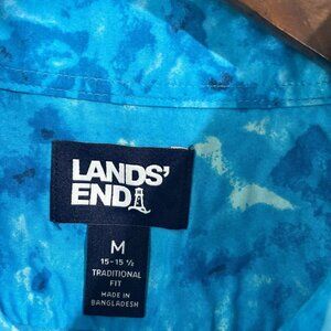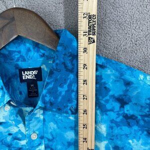 NWOT Lands' End Men's M Blue Tie-Dye Button-Up Shirt Traditional Fit 100% Cotton