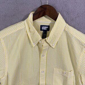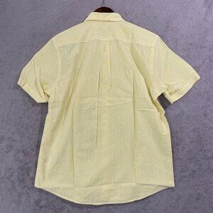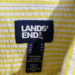 NWOT Lands' End Men's M Yellow & White Striped Short Sleeve Button Down Shirt