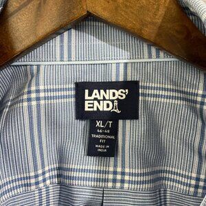NWOT Lands' End Men's XL Blue & White Plaid Button-Down Shirt Traditional Fit