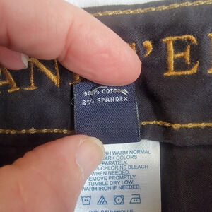 Zip and button closure. With spandex and cotton material, and pockets for convenience, these jeans are a must-have. Flared bottom.