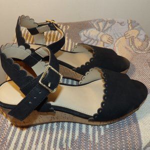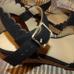 NWOT Land's End Scalloped Black Sandals Sz 6B