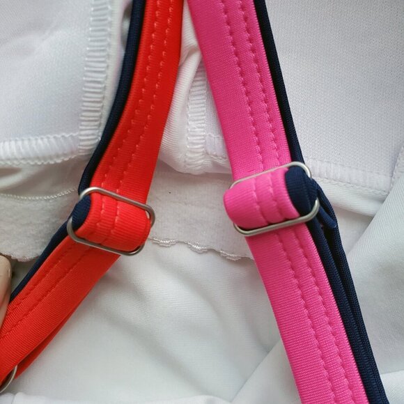 NWOT Lands' End Chlorine Resistant Scoop Neck X-Back One Piece Swimsuit Pink, Red & Navy