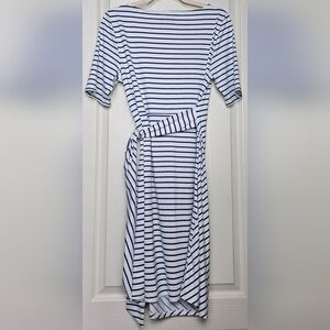 NWOT Lands End Womens Elbow Sleeve Tie Waist Striped Mini BLUE/WHITE MED 10-12