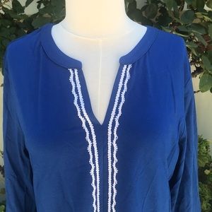 NWOT Lands End tunic. Front had white detailing at neck and going to bottom. Three-quarter sleeve. Split hem at bottom (shown in picture).