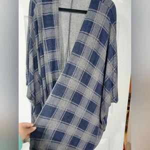 NWOT Lane Bryant Blue & Gray Plaid Short Dolman Sleeve Open Front Cardigan 18/20