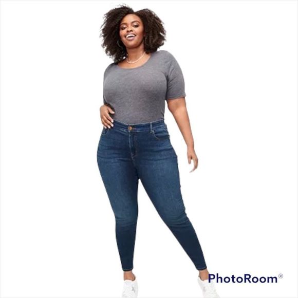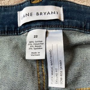 Lane Bryant deluxe fit low rise skinny jeans. Solid medium wash, no distressing or fading. Size 22. New without tags.