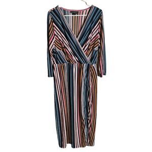 NWOT Lane Bryant Surplice-Neck Side-Ruched Midi Dress Striped size 34/36