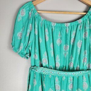 NWOT Lapogee Patterned Teal Long Maxi Dress