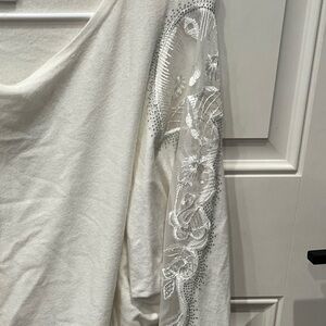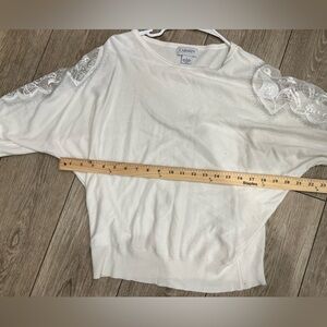 NWOT Large Carmen White Sweater with Delicate Lace and Bedazzled Jewels