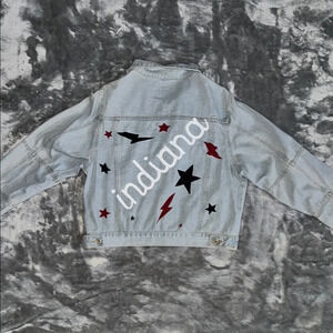 Lightweight jean jacket that is hand-painted by me as Indiana University (IU) spirit wear.