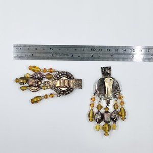 NWOT - Large Yellow Beaded Antiqued Gold Statement Chandelier Clip Earrings. These earrings have almost a tri-tone color to them. They have patina and it adds to their beauty. The earrings are 3.5” in total length and the circle is 1.25” in diameter. Earrings are new without tags and are from overstock or liquidated merchandise. Earrings are in excellent condition.