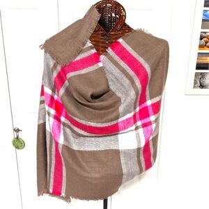 NWOT Large Oblong Light Brown/Pink/White Plaid Scarf by MixIt