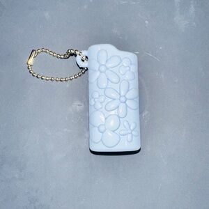 Larroude Blue/Grey Floral Lighter Case. Signature L in lower left corner of case. Key chain included.