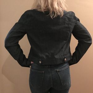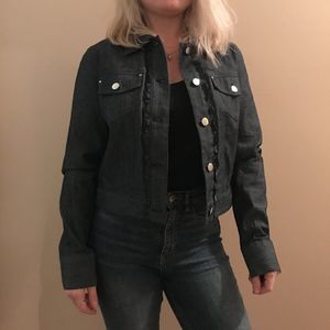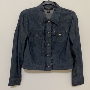 NWOT Larry Levine Blue Dark Wash Stretch Denim Jacket With Ruffles Size - S