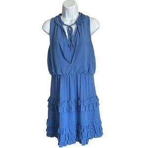 NWOT Laundry by Shelli Segal Women Ruffle Elastic Waist Blue Dress - Size 6