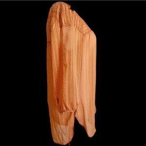 This cute orange polka dot sheer top adds just the right touch to any closet. Its lightweight fabric offers comfort and style. Size M Pit to pit is 19in