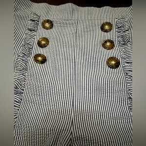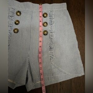 Lauren James Birdie Stripe Ruffle Seersucker Front Shorts. SZ: Medium