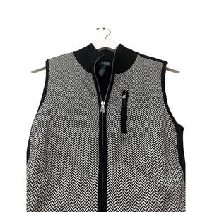 NWOT Lauren Ralph Lauren Black White Herringbone Size Medium Fall Vest Layering