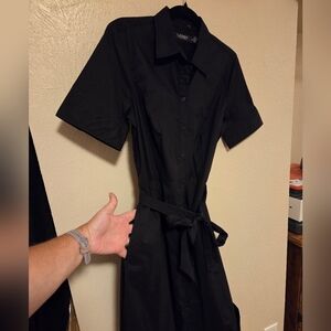 NWOT Lauren Ralph Lauren Women's Petite Cotton-Blend Shirtdress Black Size 8 P