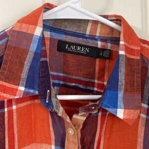NWOT Lauren Ralph Lauren collared long roll tab sleeve button front linen shirt