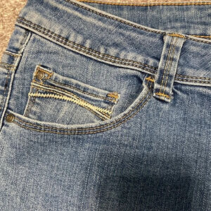 NWOT Lee Perfect Fit jeans in size 6 petite. Traditional 5 pocket style with zipper and bottom front closure, tummy control panel, straight leg, sits just below the waist and has embroidered pockets. Stretch fabric is 81% cotton, 17% polyester and 2% spandex. Please see photos for approximate measurements laying flat and details. Excellent new condition from smoke free and pet free home.