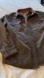 Rugged dark brown shirt jacket. Features dual chest pockets and button cuffs. Ideal for layering. Two adjustable, removable holsters and multiple inner pockets. Waxed texture. Never worn, too large for my husband.