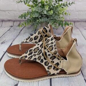 NWOT Leopard Print Zip Back Thong Boho Sandals