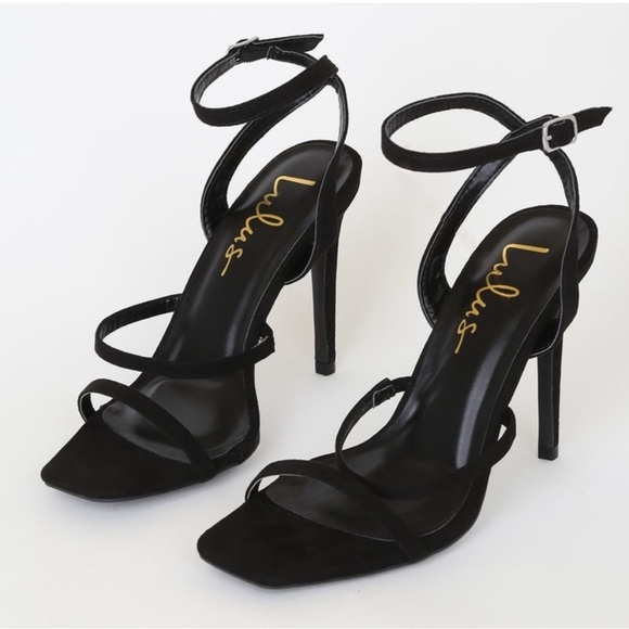 NWOT The Lulus Leticiya Black Suede Ankle-Strap High Heel Sandals are so chic that they will elevate your look to new heights! Soft vegan suede shapes these cute high heel sandals with a square-toe upper, slender toe strap, and a vamp strap with a bit of elastic. An adjustable ankle strap (with a silver buckle) atop a stiletto heel gives this sandal a fierce vibe!