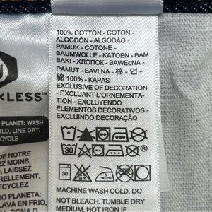 If you are familiar with the shrink to fit they come with a tag that can be torn off attached to size tag in back. That has been torn off.