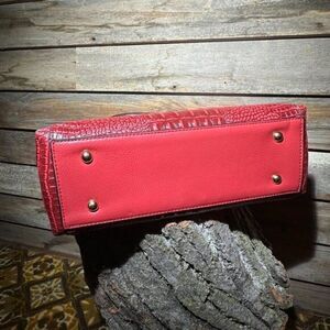 NEW Red faux crocodile leather shoulder bag with brown leather handles and gold hardware and matching wallet by Lirenniao