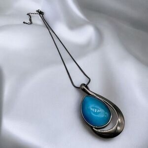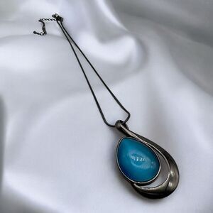 NWOT Lia Sophia Stunning Blue Gunmetal Pendant Necklace Statement Rope chain