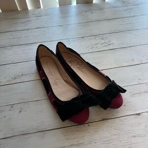 Burgandy and black bow detail flats
