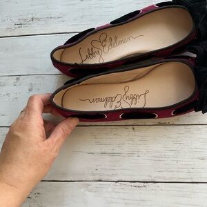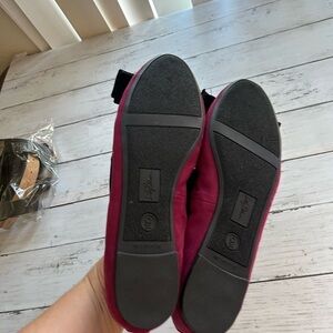 NWOT Libby Edelman Velvet flats in Burgandy and black