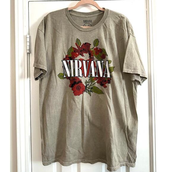 NWOT Licensed NIRVANA Flower Rose Wreath Vintage-Look Tee - Unisex Sz XL