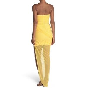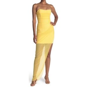 NWOT Likely Blakely Strapless Asymmetric Draped Mesh Overlay Gown in Yellow
