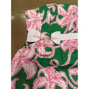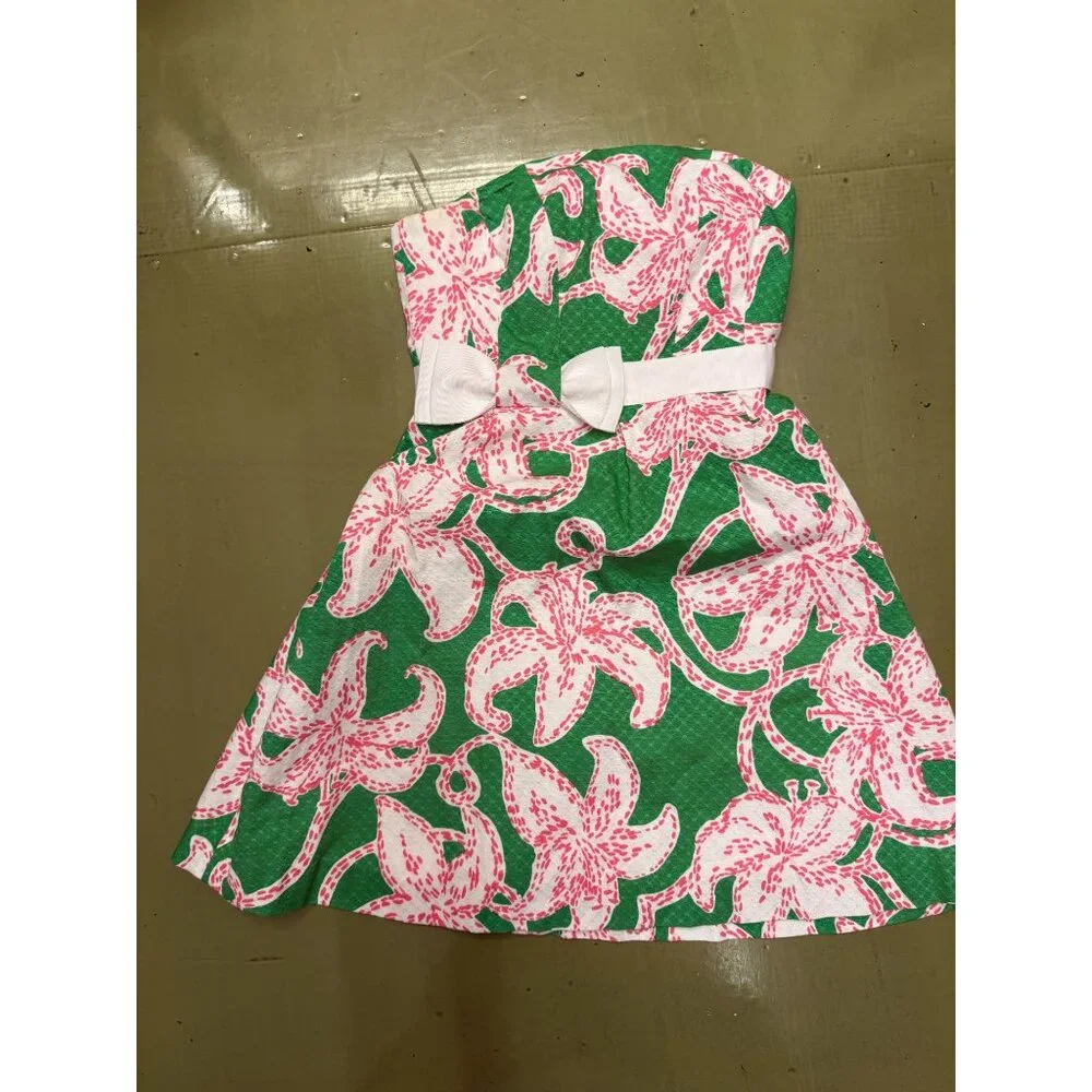 Website description: This Lilly Pulitzer Amberly Twinkle dress features a beautiful floral pattern in shades of green and pink, perfect for summer occasions such as weddings, parties, and formal events. The strapless design showcases the dress's fit and flare style, while the zipper closure adds a touch of practicality.
