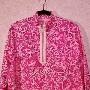 NWOT Lilly Pulitzer Ashley PopOver Half Zip Passion Pink Floral, Cotton Top SzL