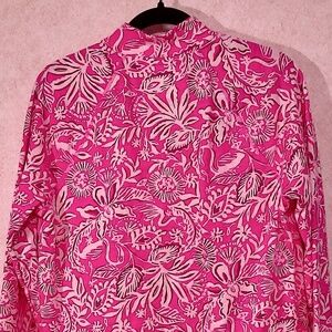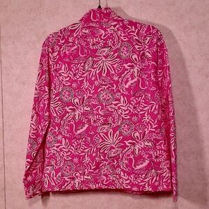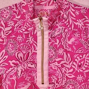 NWOT Lilly Pulitzer Ashley PopOver Half Zip Passion Pink Floral, Cotton Top SzM
